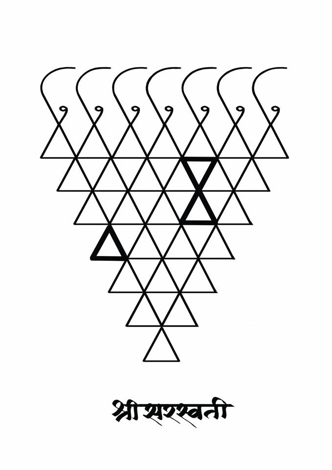 Write Ganga triveni and below draw this algorithm and keep it in with other god idols or pictures, so if any mistakes we make while doing pooja those won't affect us. When you will do abhishek on this paper it will be superb as all the nano particles will already be present in it. Laminate this paper and after doing abhishek on this paper in the plate (thaman) while taking tirtha, take it 3 times because ganga, yamuna saraswati are one keep this belief and drink it.